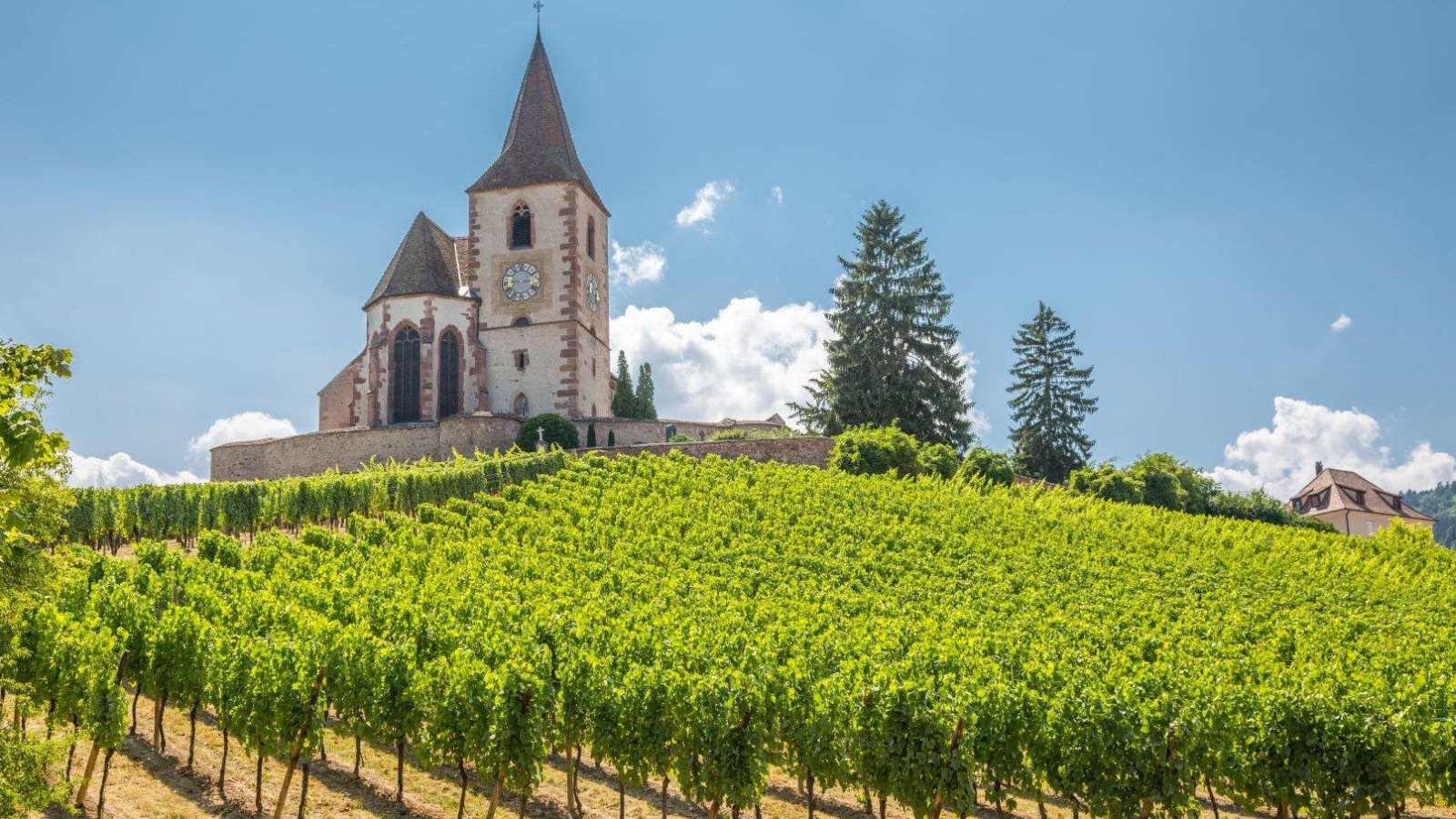 Nos visites privées ou partagées de l'Alsace, en petit groupe, vous emmèneront le long de la route des vins d'Alsace, entourée de vignobles.