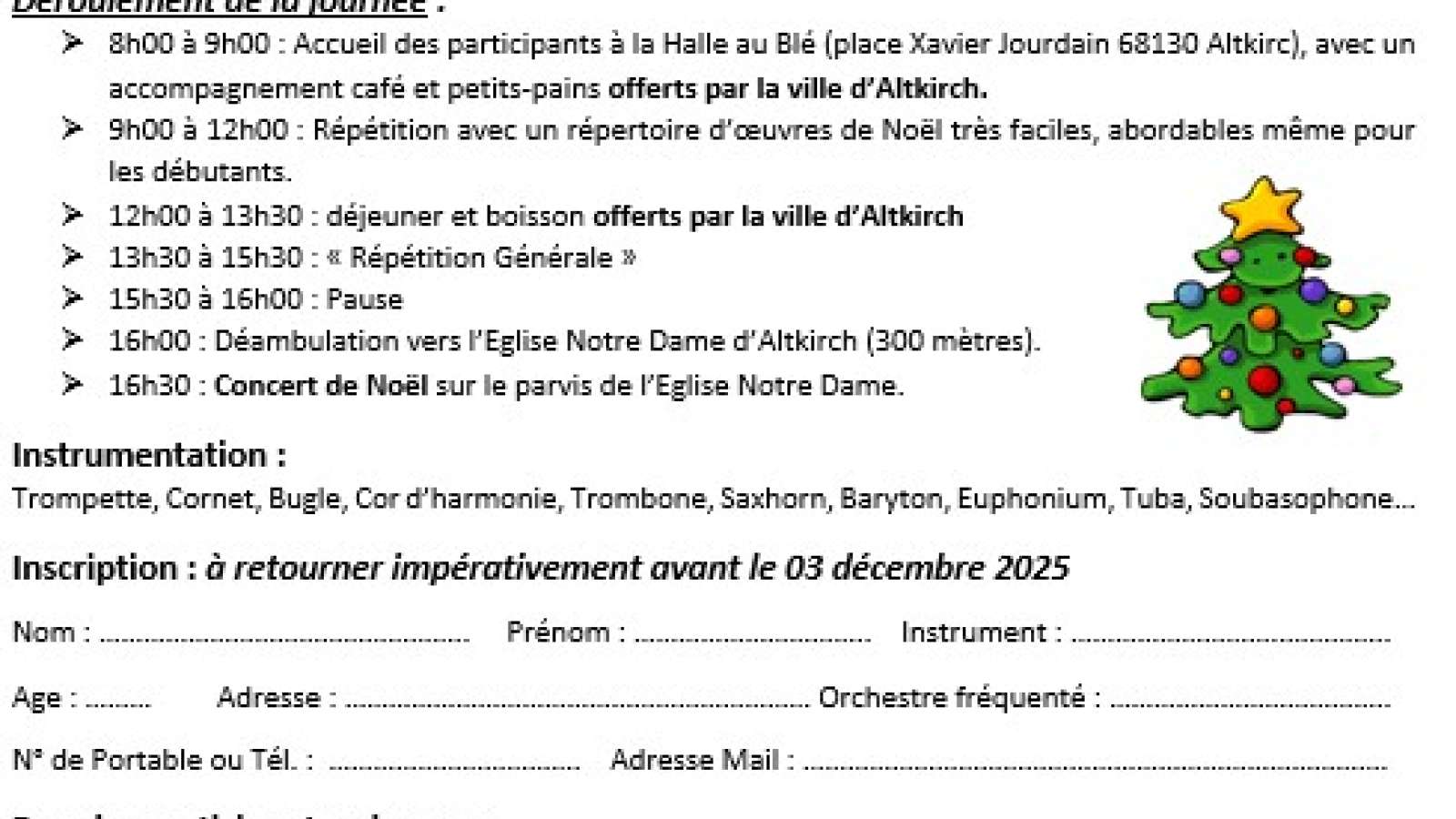 Les "Cuivres de Noël" sont de retour à Altkirch le 7 décembre 2025, format « MasterClass » pour la réalisation d’un répertoire de Noël, sous la Direction de Philippe Wendling.
