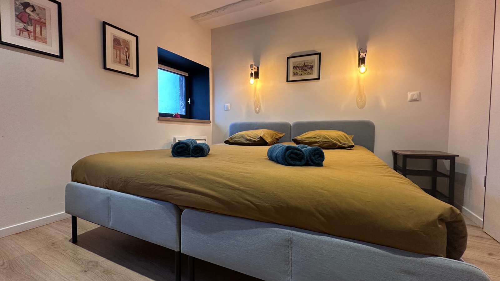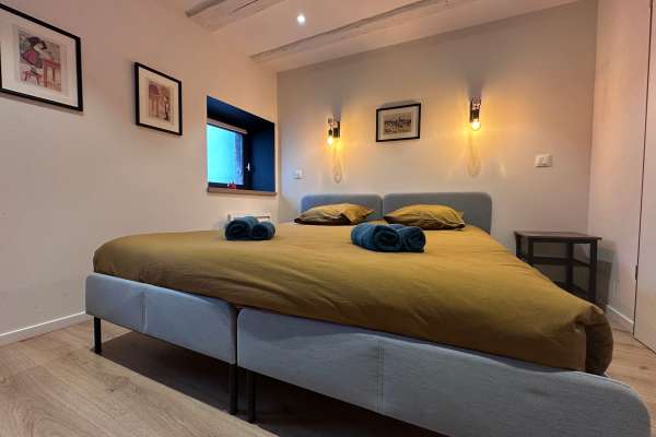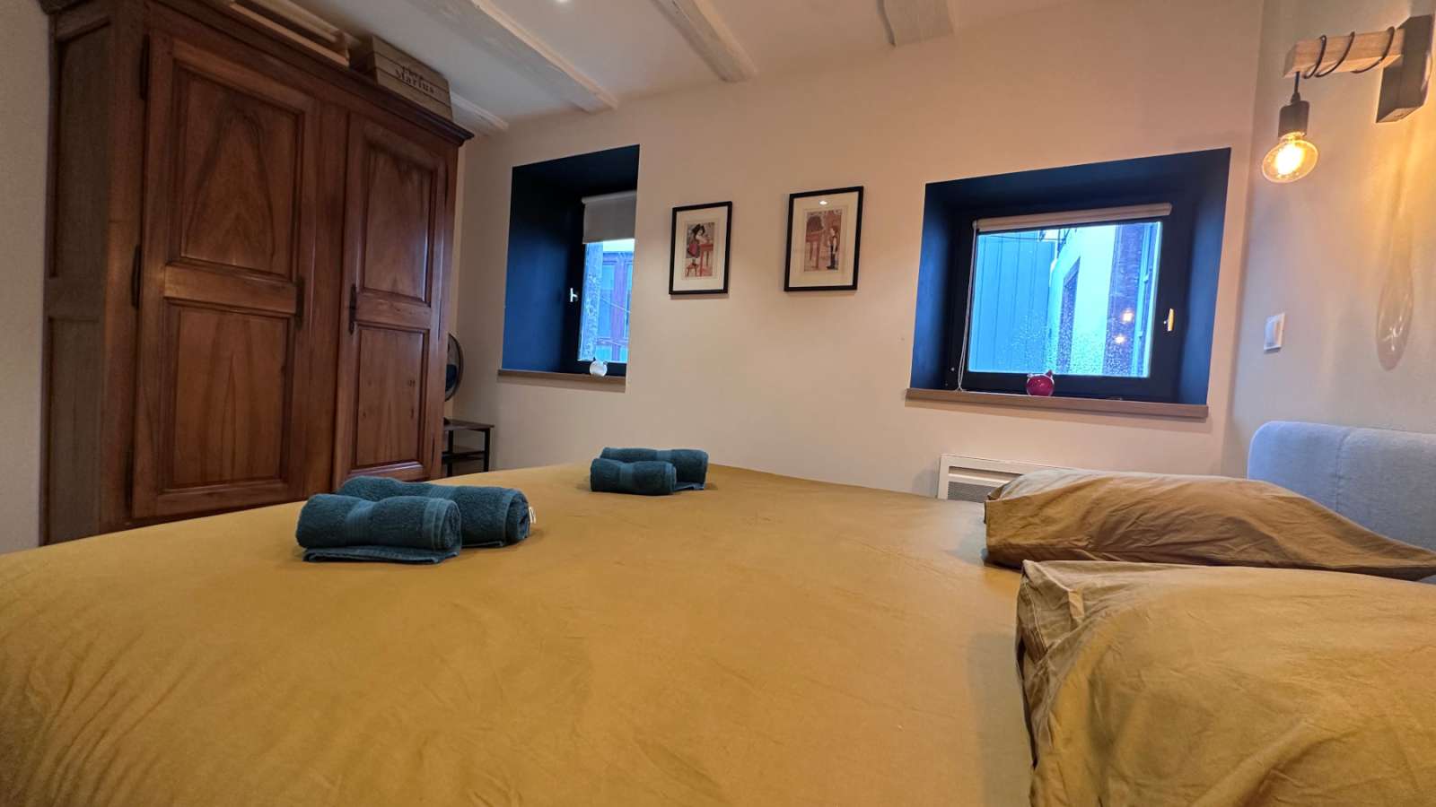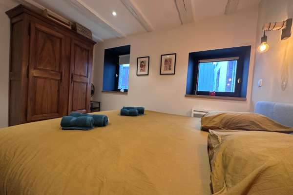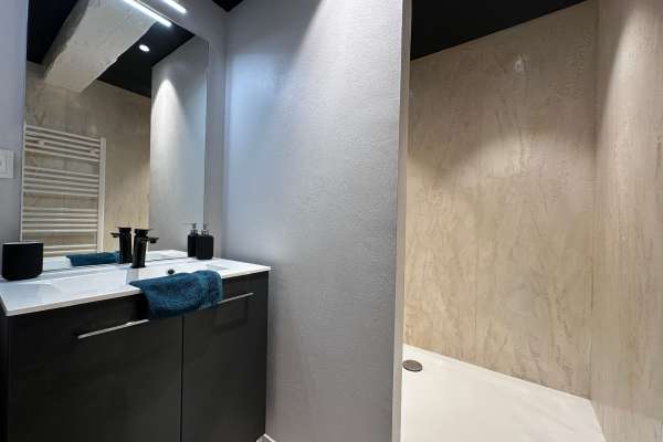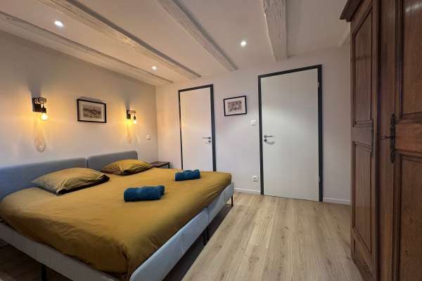 Vous trouverez également une chambre avec lit double (180 x 200) et armoire de rangement avec sa salle d’eau attenante (douche, meuble vasque et sèche serviettes). WC séparé. De plus, vous aurez libre accès à une buanderie commune avec machine à laver et sèche-linge !