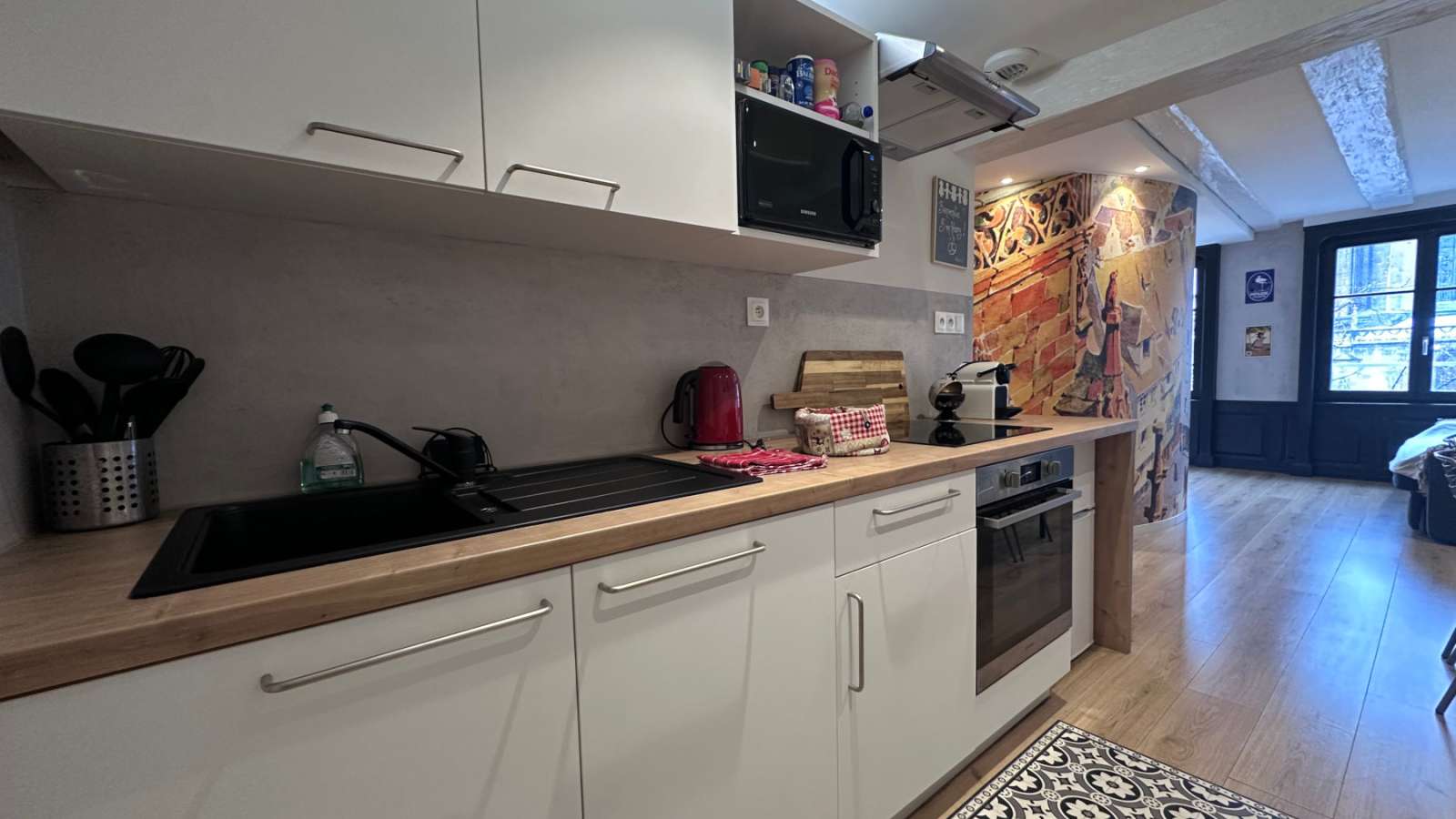 Notre appartement, idéalement prévu pour 1 à 2 personnes est l’endroit parfait pour séjourner en Alsace ! Sa décoration cosy et traditionnelle avec ses poutres apparentes et sa fresque, vous immergera dans notre belle Alsace.