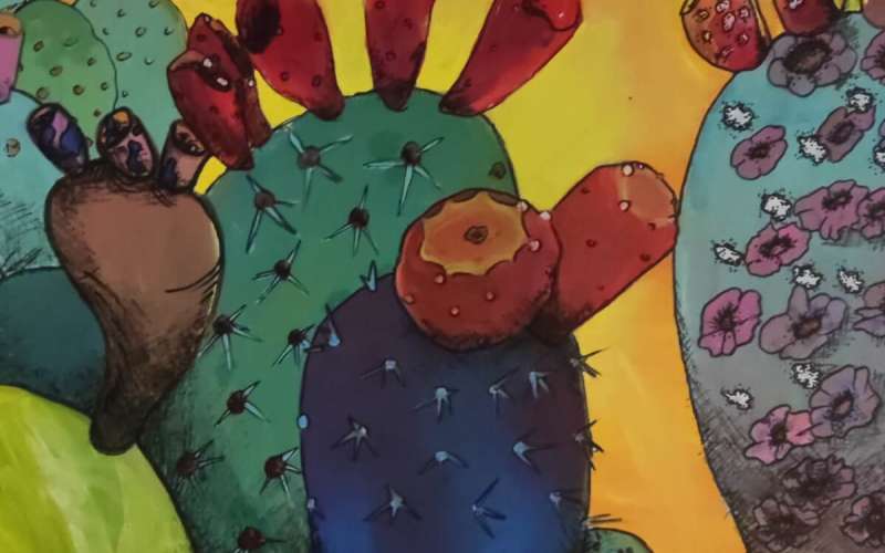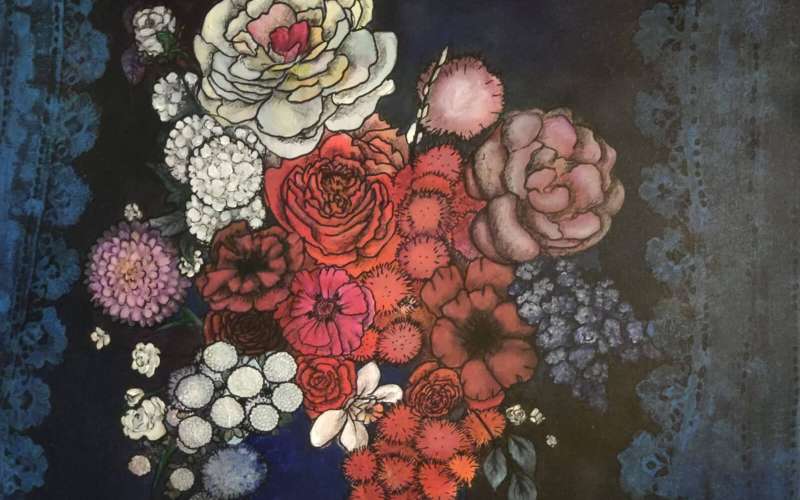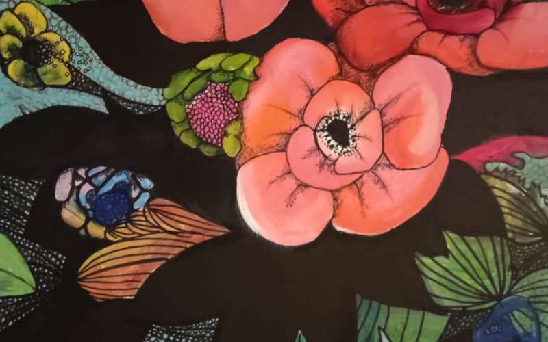 Des fleurs et des couleurs vives pour parler de ce qu’on hérite, ce qu’on récupère, ce qu’on transmet et ce qu’on partage.