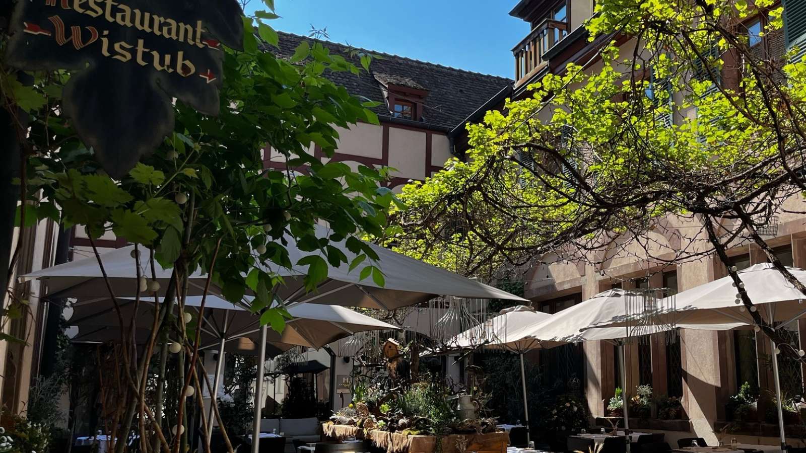 La Brasserie Historique de la Maison des Têtes vous propose également de profiter de sa charmante terrasse, située dans une cour intérieure paisible et pavée de grès rose d'Alsace qui apporte une touche d'authenticité et d'élégance. Ce cadre enchanteur est idéal pour profiter des beaux jours, où vous pourrez déguster vos repas en plein air tout en admirant l'architecture de ce lieu emblématique.