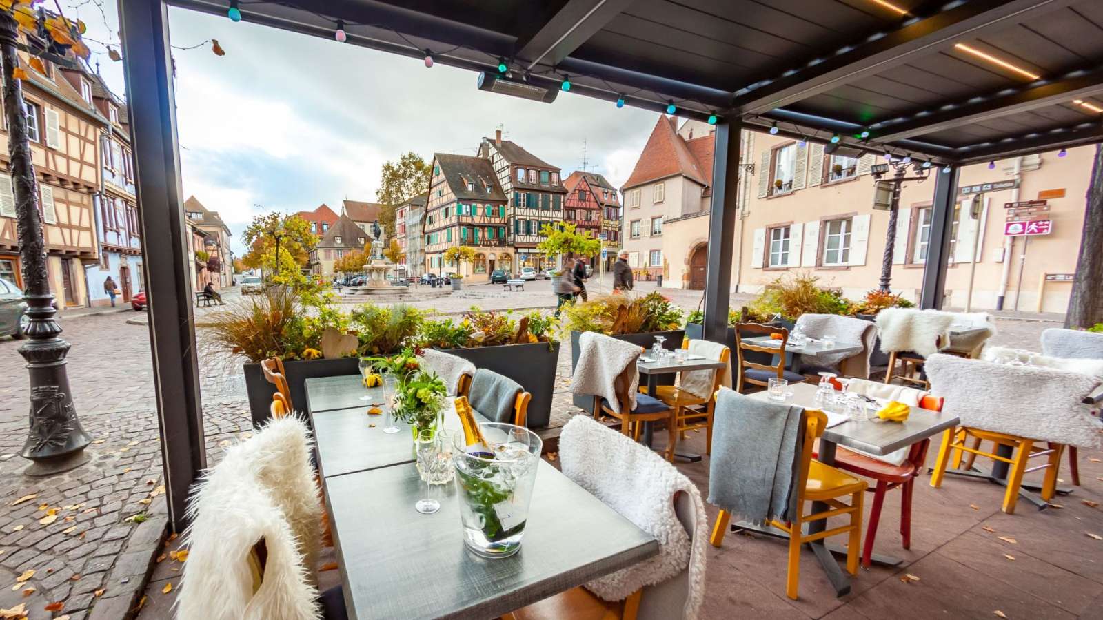 Au retour des beaux jours, le Bistrot des Lavandières dévoile sa terrasse, offrant une vue imprenable sur la Place des 6 Montagnes Noires.
