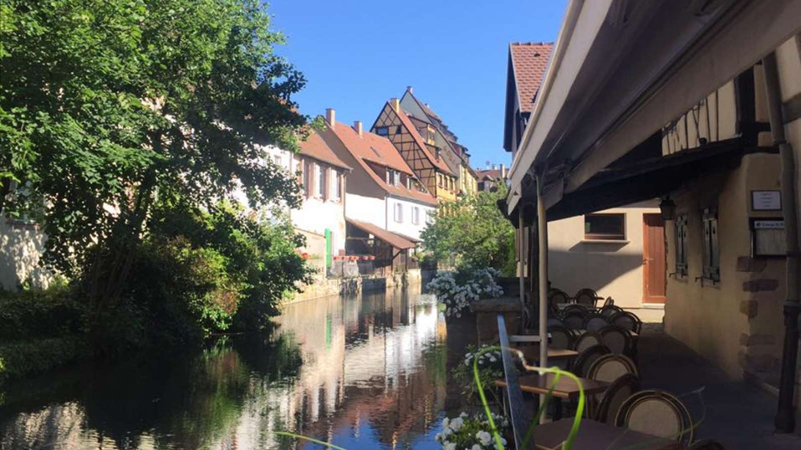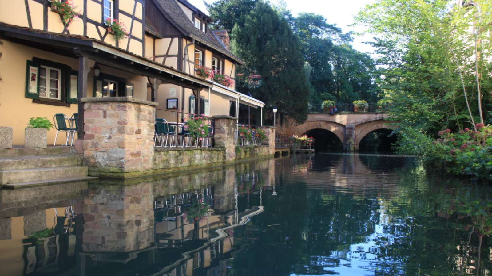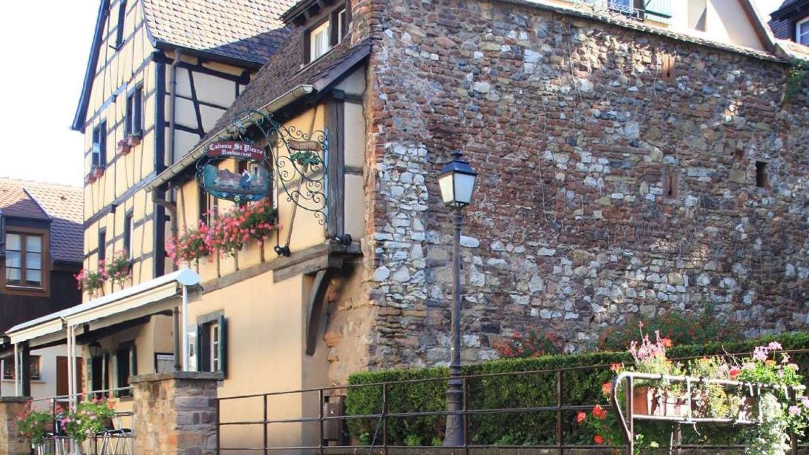 Dans le quartier de la Petite Venise à Colmar, le Caveau Saint-Pierre est abrité dans une maison alsacienne typique à colombages du XVIème siècle au bord de la Lauch, rivière traversant la ville.