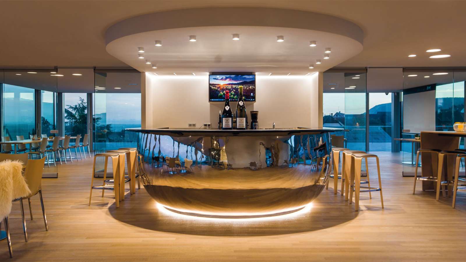 Au cœur du vignoble, à plus de 300m d'altitude, découvrez notre bar à vins panoramique, unique en Alsace. Dégustez toute l'année nos Vins et Crémants d'Alsace agrémentés de planchettes de produits du terroir.