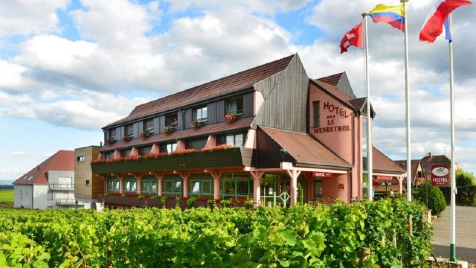 Bienvenue à l'hôtel le Ménestrel, à quelques pas du centre ville de Ribeauvillé. Vers les trois châteaux surplombant la ville ou vers les paysages viticoles de la commune, les chambres de l'établissement vous offrent une superbe vue ! Pour un moment de détente autour d'un verre entre amis, profitez de sa belle terrasse et de son bar. Ne vous inquiétez pas du stationnement, l'hôtel dispose d'un très grand parking.