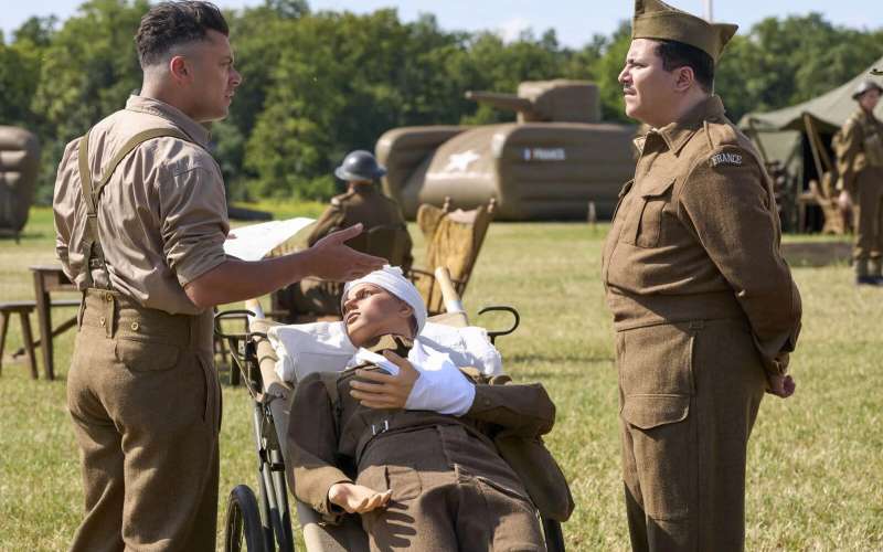 Synopsis : Juin 1944. L’Europe est déchirée par la guerre, le Débarquement se prépare. Denis Porte continue avec dévouement son travail quotidien sur une base militaire anglaise... factice. Sa mission : déplacer chaque jour des soldats postiches et tromper ainsi l’ennemi. Chez les Porte, on a tendance de père en fils à mourir en héros pour la France. Alors pas question pour sa mère que Porte prenne le moindre risque. S’occuper d’une base factice, c’est le maximum qu’elle tolère pour son fils. Mais après avoir fait la rencontre de Sami, un médecin algérien qui rêve de rencontrer De Gaulle, ils décident lors d’une soirée arrosée d’y prendre part. Ils prennent le large avec bravoure (et pas mal de grammes dans le sang). Sauf qu’ils n’ont pas la bonne date ni le bon lieu. Ajoutez à cela un héros qui ne veut surtout pas s’exposer au danger. Le jour J, euh ou presque …