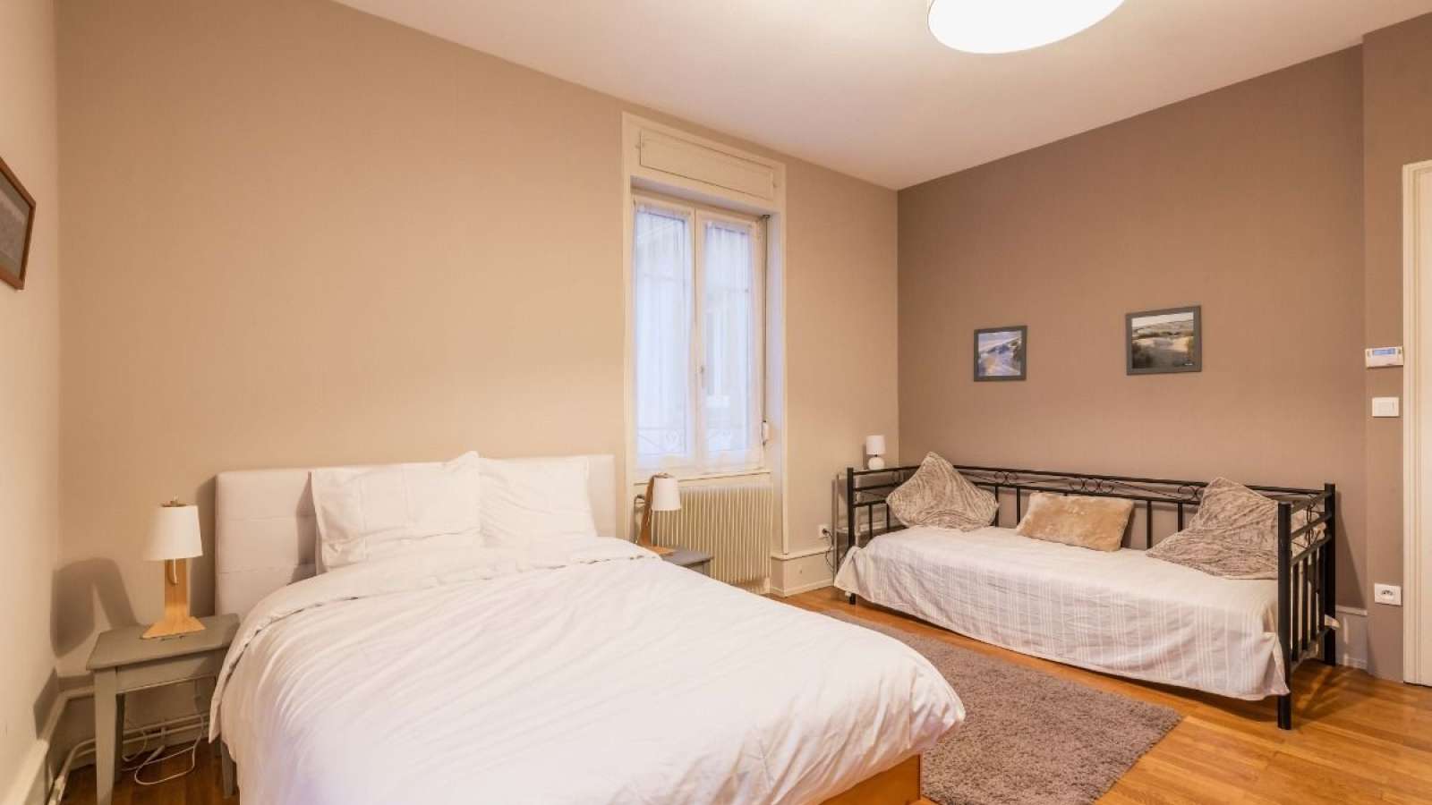 Rénové en 2015, il dispose de 2 grandes chambres à coucher avec de vrais couchages côté jardin, et d'un grand séjour avec sa cuisine ouverte contemporaine côté rue. Il est situé à 10 minutes à pieds de l'hypercentre, au début du Quartier Saint Joseph, apprécié pour son cadre de vie.
