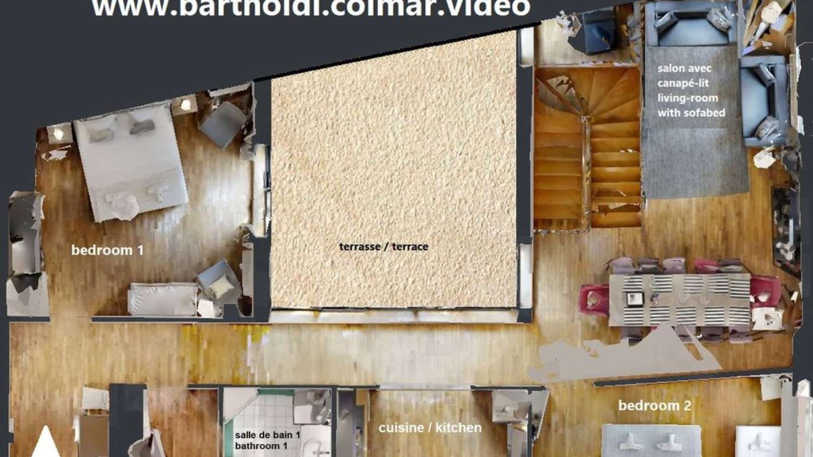 Le duplex BARTHOLDI est composé de 4 chambres et 3 salles de bain. Il dispose d'une terrasse de 25 m2 agréable en été comme en hiver.