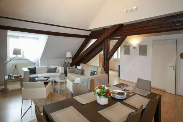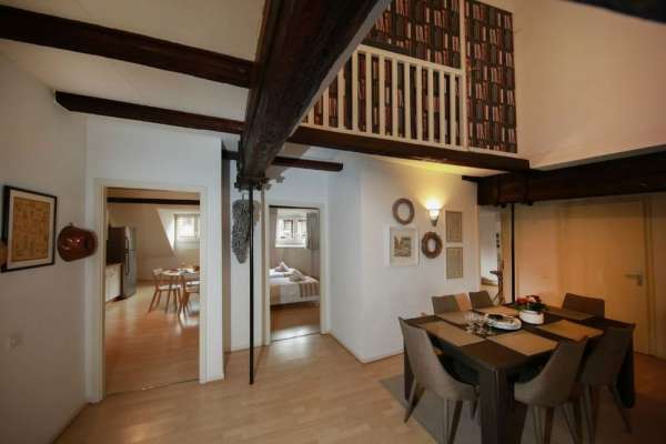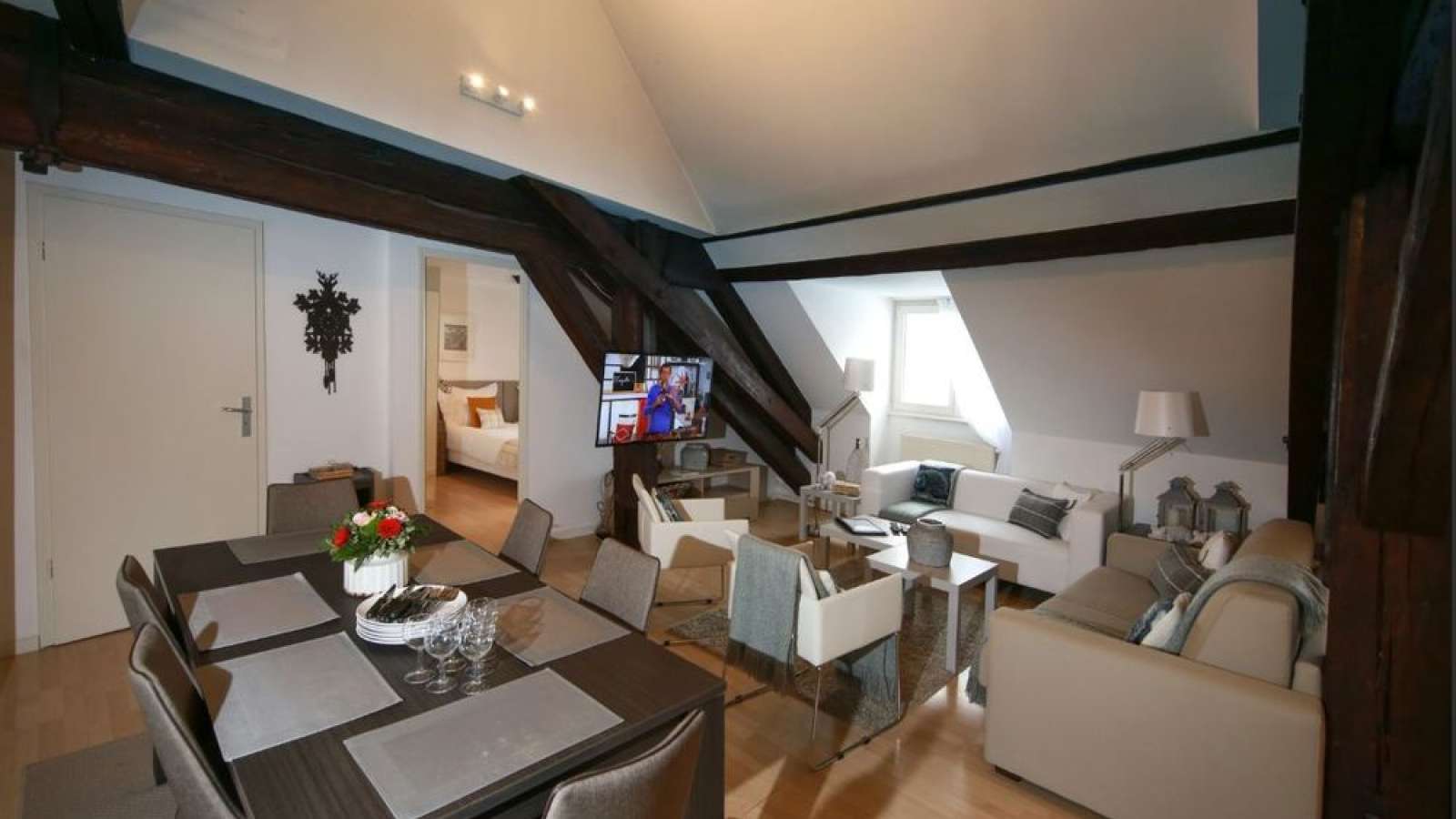 L'appartement Baumgartner avec sa décoration alsacienne moderne, ses poutres apparentes et ses grands espaces, sera le parfait appartement pour votre séjour en Alsace.
