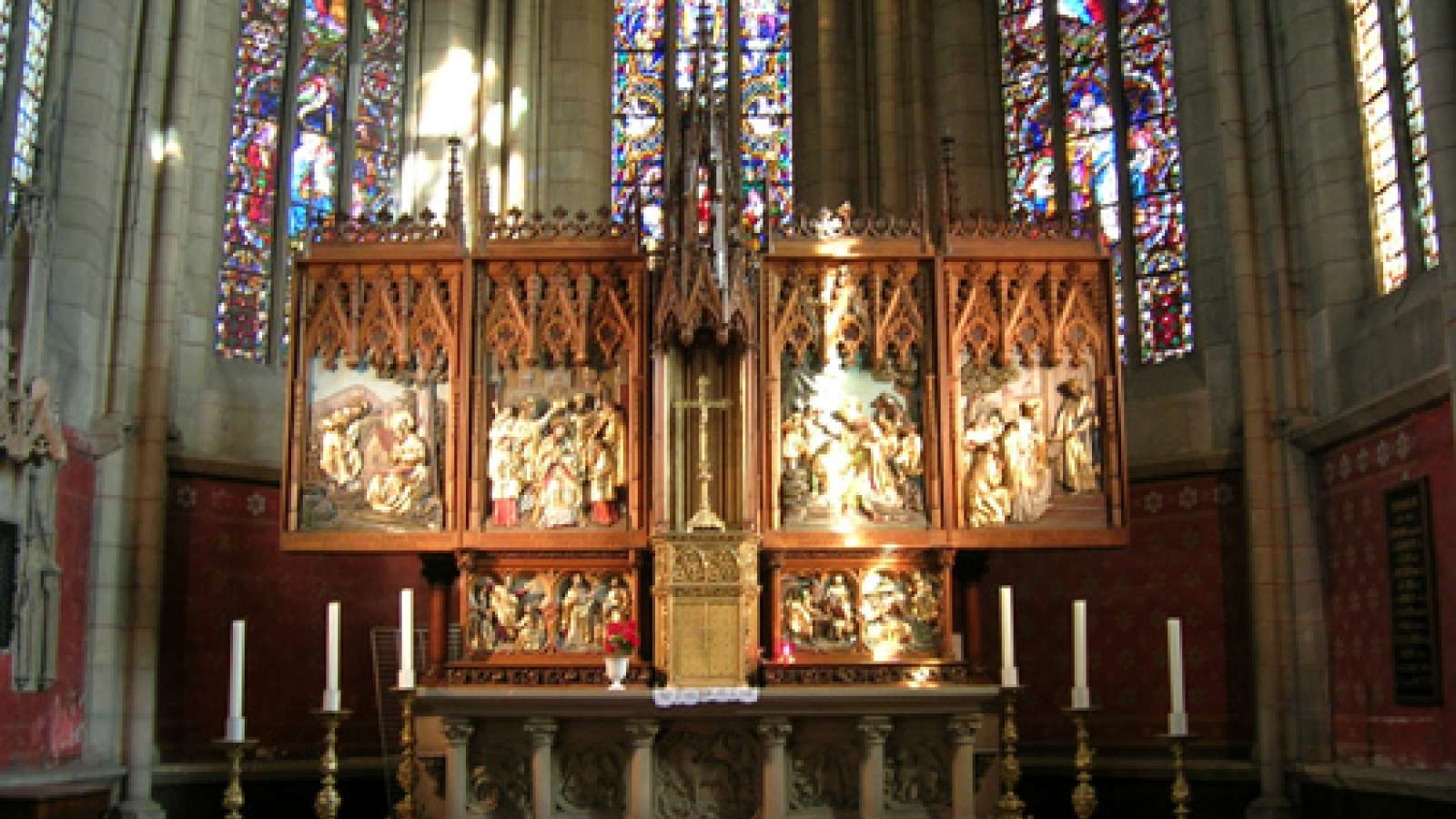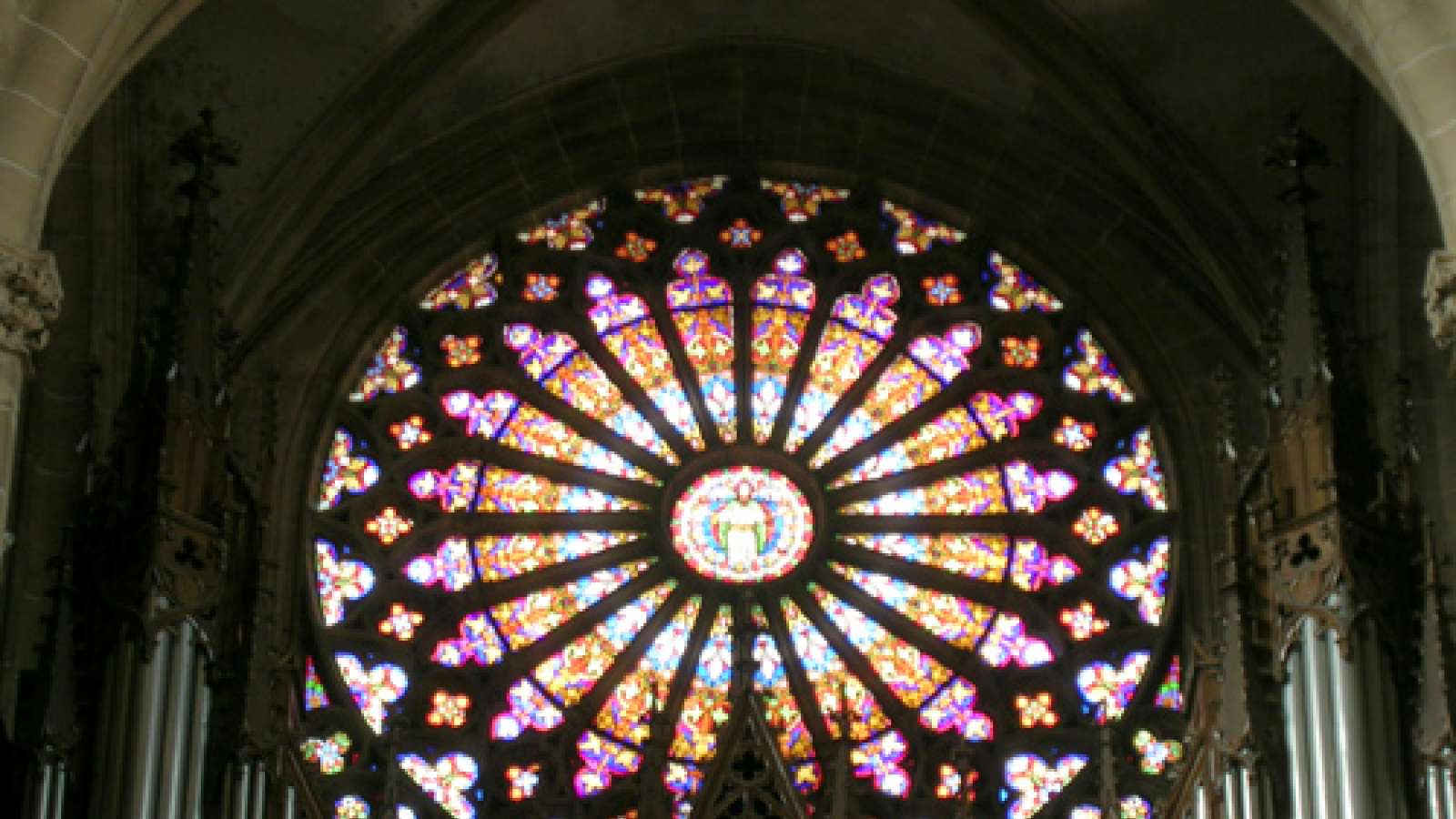 De style roman-ogival, elle montre l'évolution de l'architecture religieuse du 11ème au 19ème siècle. Dans le transept, la partie la plus ancienne se rattache à la nef à trois travées flanquées de bas-côtés à six travées chacun. On remarque l'alternance des piliers : simples et en faisceaux. Bel autel de la Vierge du 15ème siècle à l'un des piliers. Nef terminée par un massif Ouest à deux tours (Sud inachevée, Nord 1875). Le portail mutilé de ses sculptures à la Révolution est surmonté par une très belle rosace.