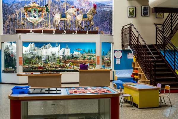 Curiosité du musée, un réseau de trains s’étend sur l’ensemble du deuxième étage !