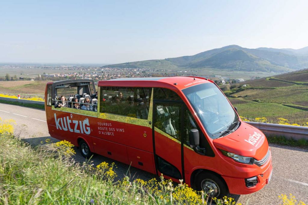 À bord du Kut’zig, bus cabriolet, découvrez de façon insolite le coeur de la Route des Vins d’Alsace : Colmar, Ribeauvillé, Hunawihr, Riquewihr, Kaysersberg Vignoble, Turckheim et Eguisheim.