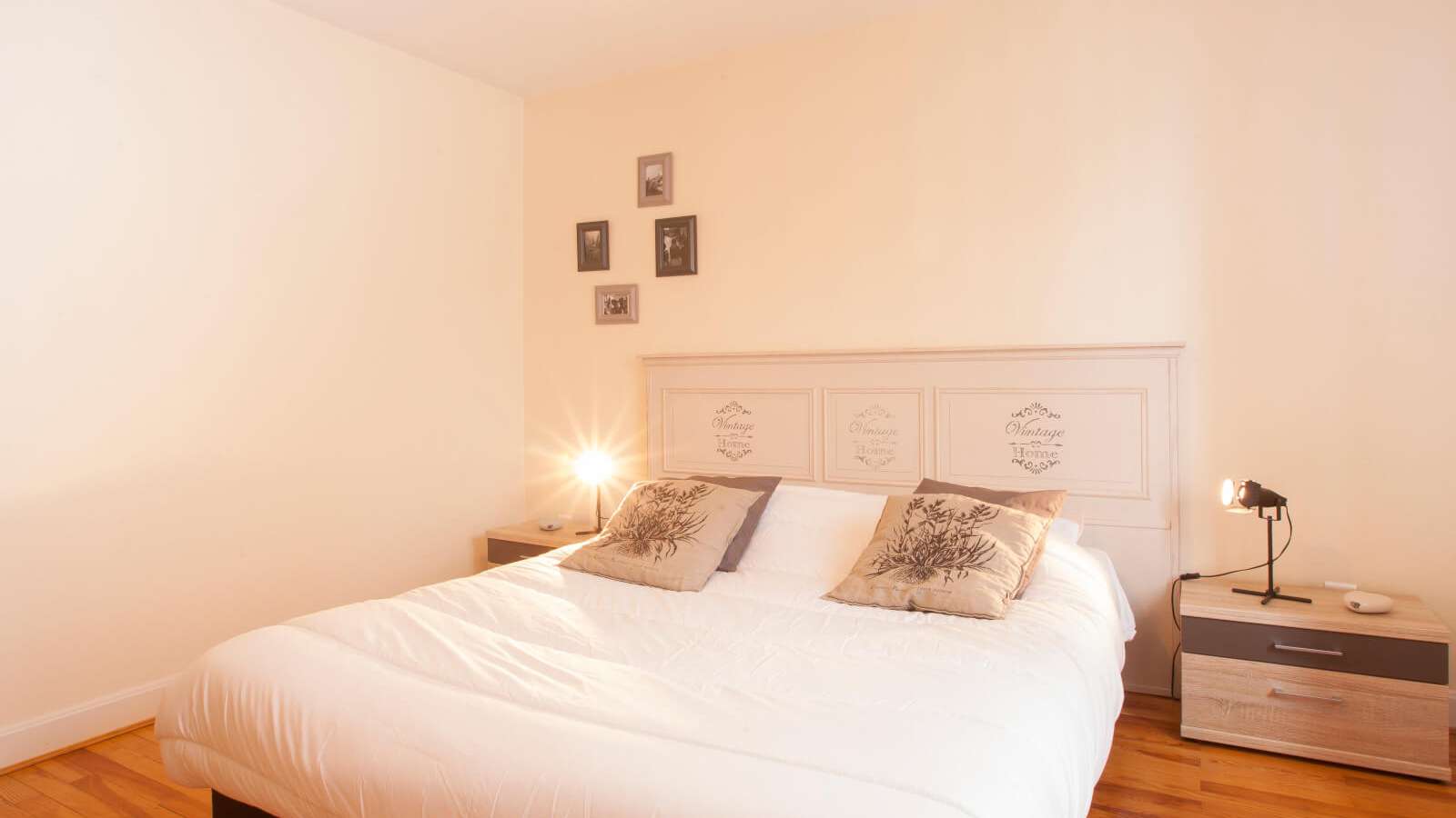 Le logement comprend une chambre fermée avec un lit (160cm), un grand salon avec un canapé convertible de qualité (matelas bultex 17 cm d'épaisseur), une cuisine ouverte sur coin repas, une salle de bain avec WC, et une terrasse.