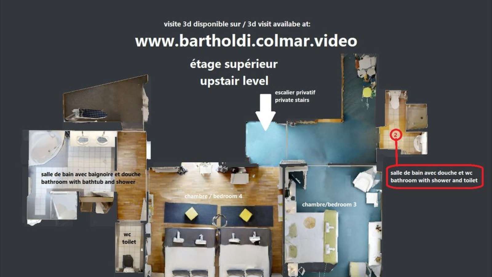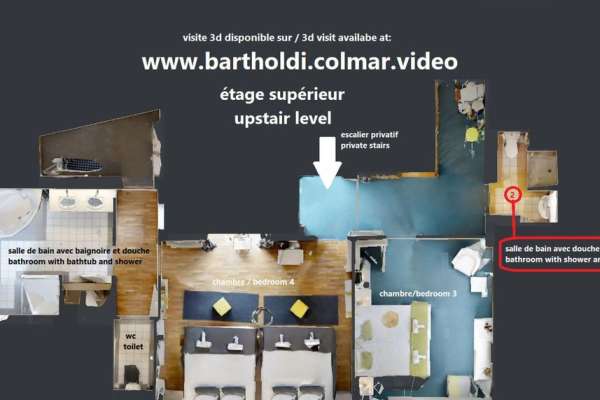 Le duplex BARTHOLDI est composé de 4 chambres et 3 salles de bain. Il dispose d'une terrasse de 25 m2 agréable en été comme en hiver.
