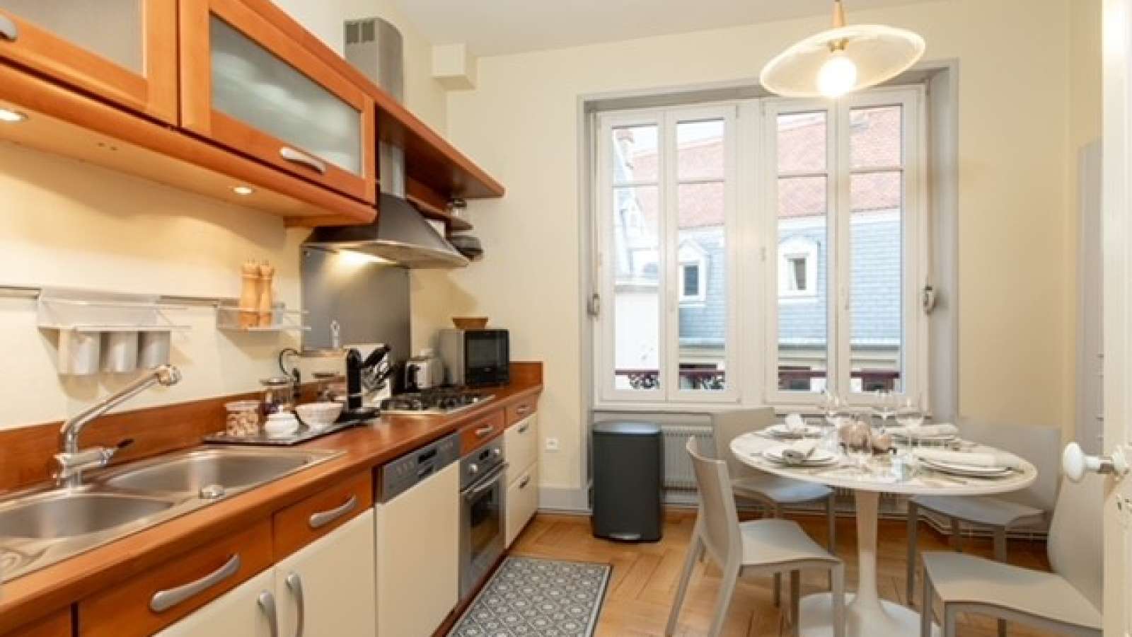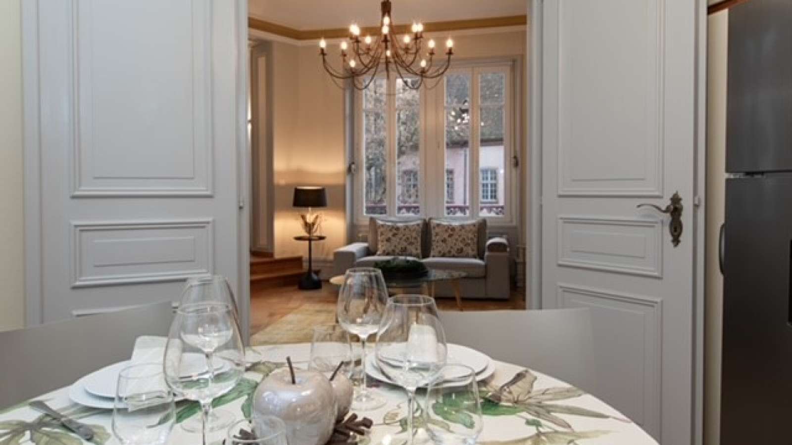 Le "Meublé - Place des Dominicains" est un appartement récemment rénové situé dans le centre de Colmar, à 200 mètres de la Maison des Têtes et à 400 mètres de la collégiale Saint-Martin.