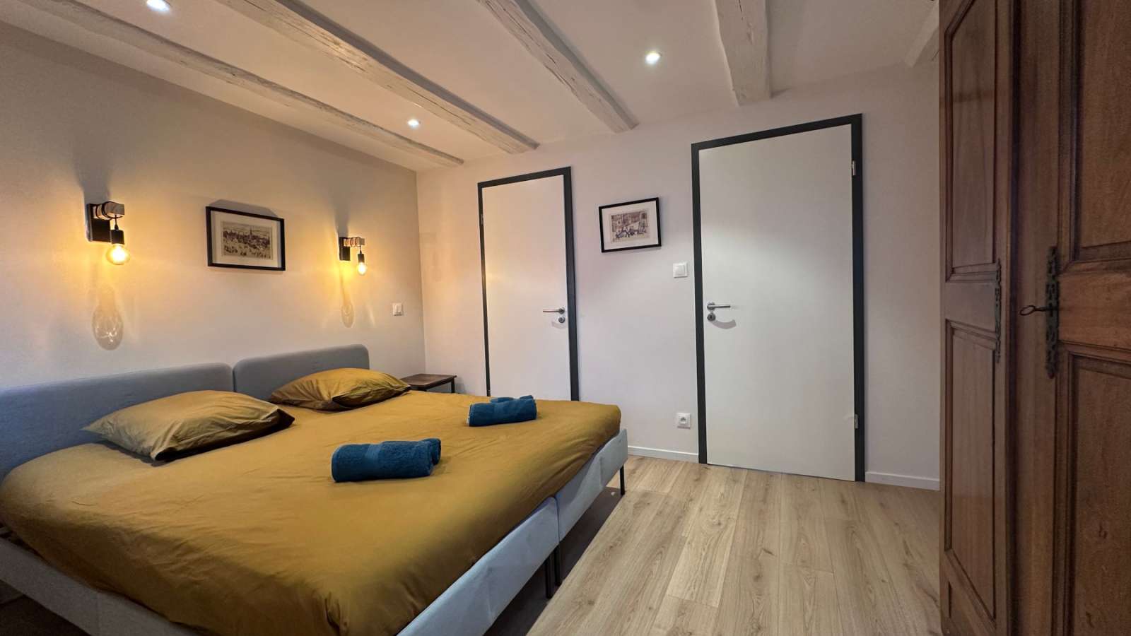 Vous trouverez également une chambre avec lit double (180 x 200) et armoire de rangement avec sa salle d’eau attenante (douche, meuble vasque et sèche serviettes). WC séparé. De plus, vous aurez libre accès à une buanderie commune avec machine à laver et sèche-linge !