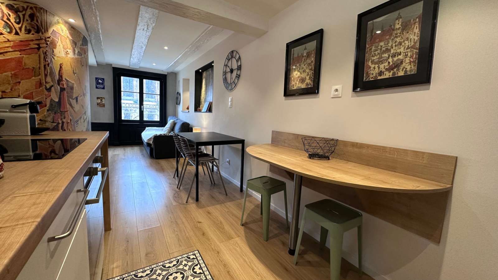 Notre appartement, idéalement prévu pour 1 à 2 personnes est l’endroit parfait pour séjourner en Alsace ! Sa décoration cosy et traditionnelle avec ses poutres apparentes et sa fresque, vous immergera dans notre belle Alsace.