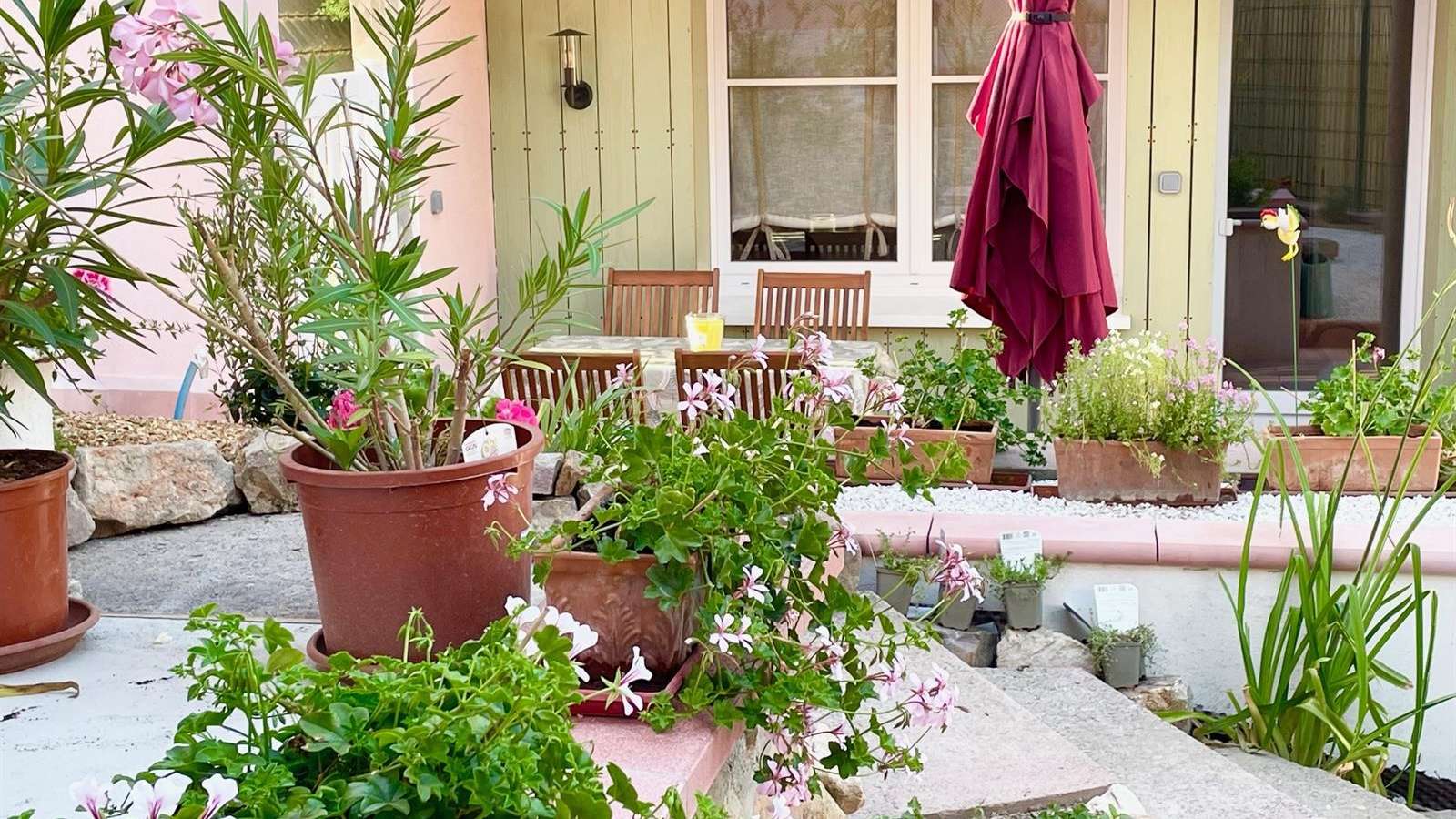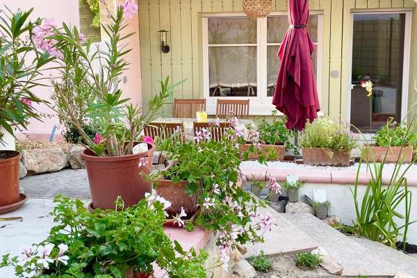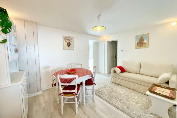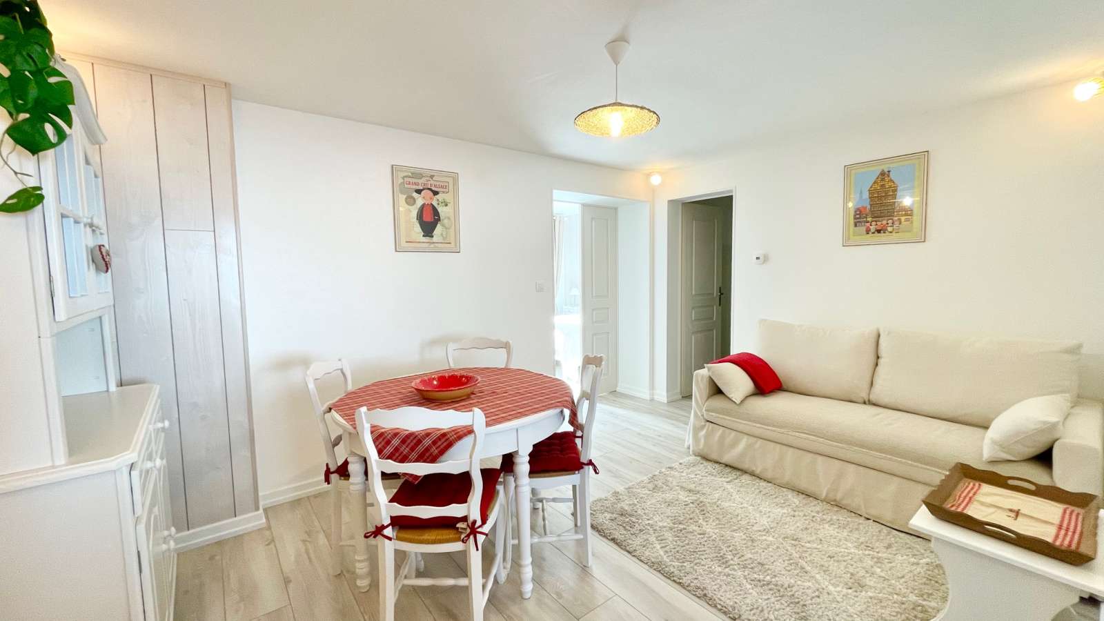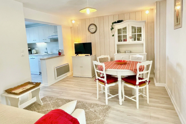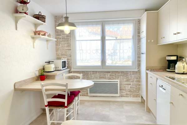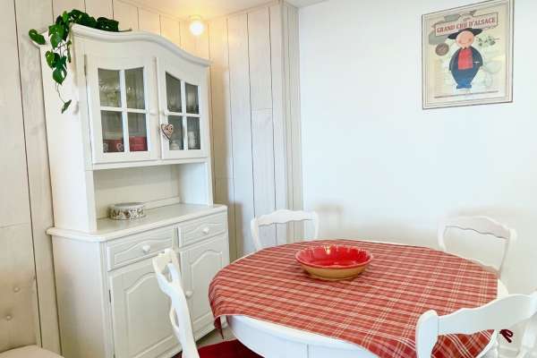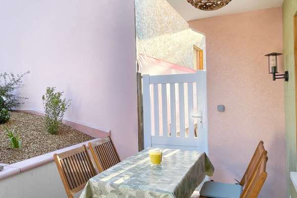 Coquet appartement de 50m2 au cœur du vieux Horbourg-Wihr, dans un quartier calme, avec place de parking, petit jardin privatif avec une grande terrasse et salon de jardin en bois.