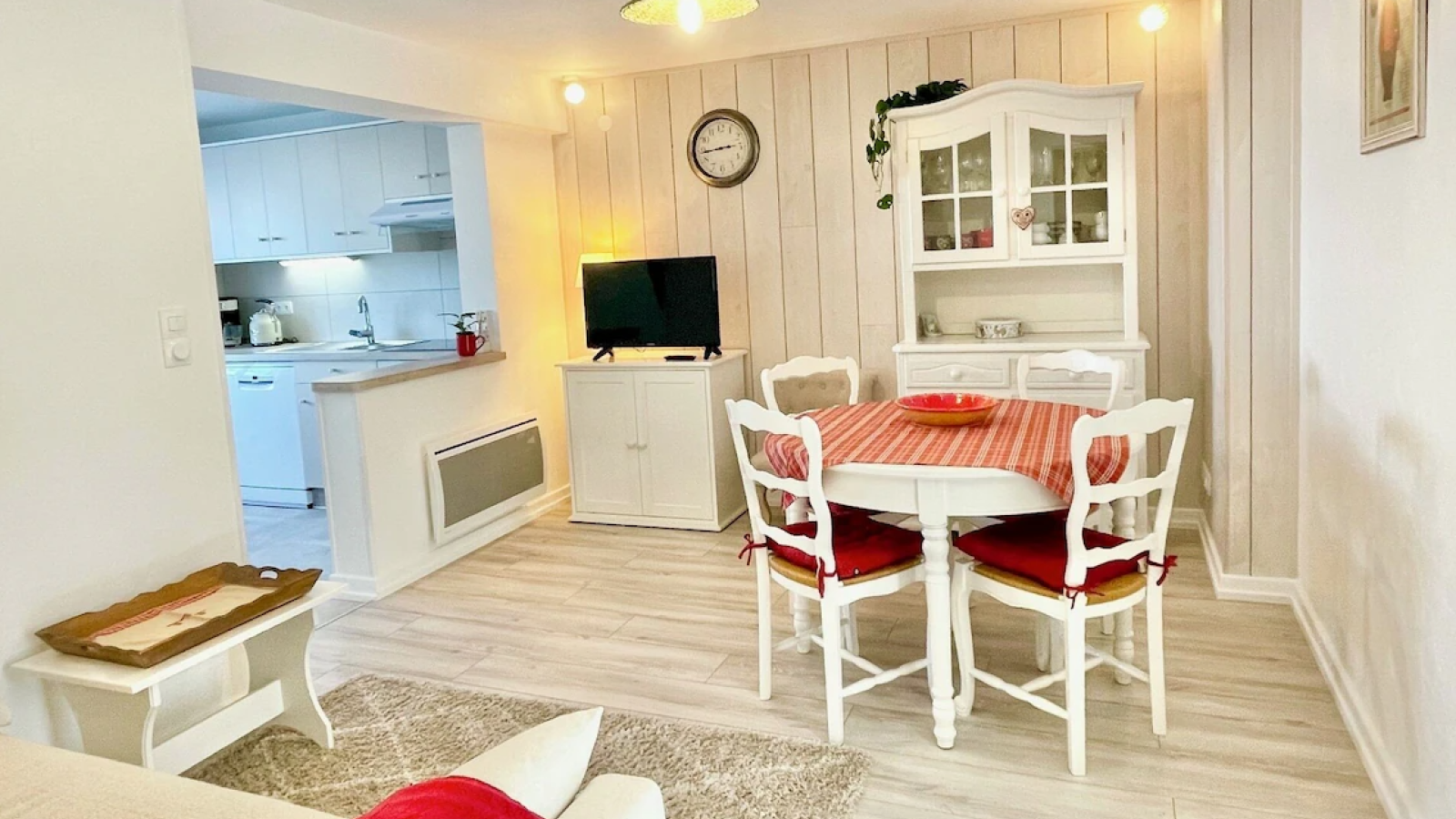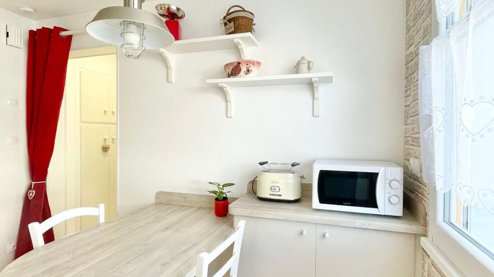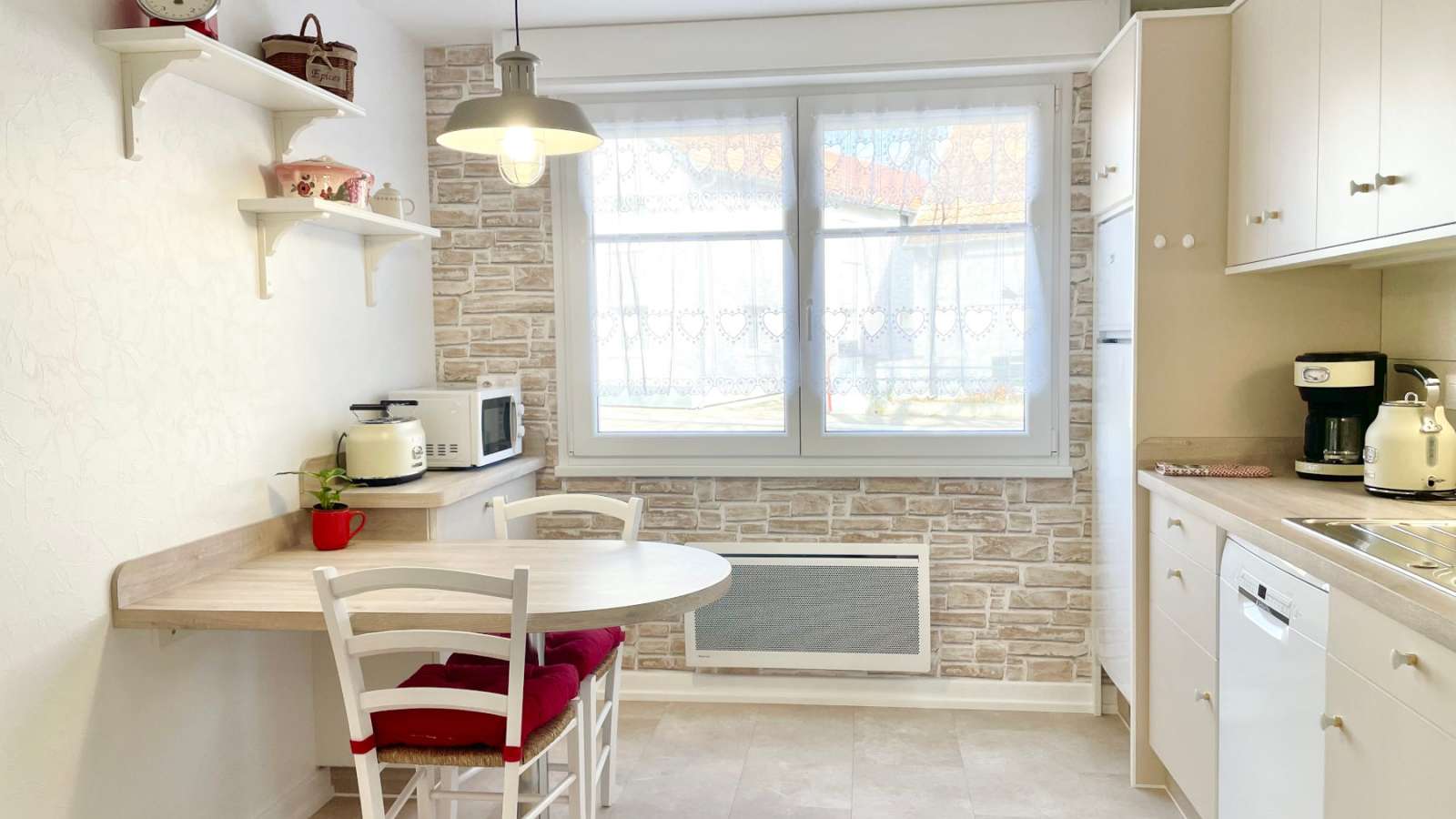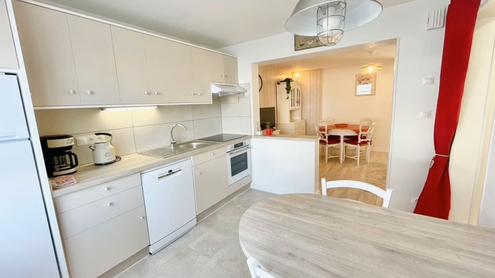 Cuisine équipée Four à micro ondes Four Machine à café Réfrigérateur Congélateur Lave vaisselle Fer et table à repasser Lave linge privatif TV Sèche cheveux