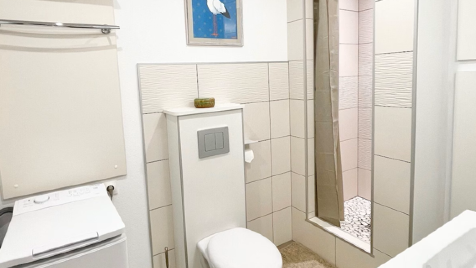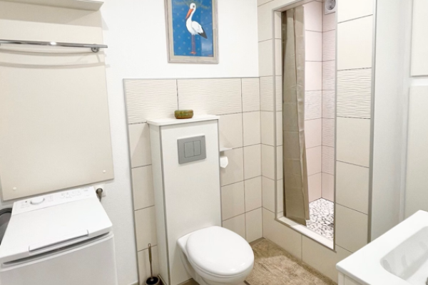 Nb de salle de bain (privative) avec douche : 1 Nb de WC séparés (privatifs) : 1 Nb de WC dans la salle de bains : 1
