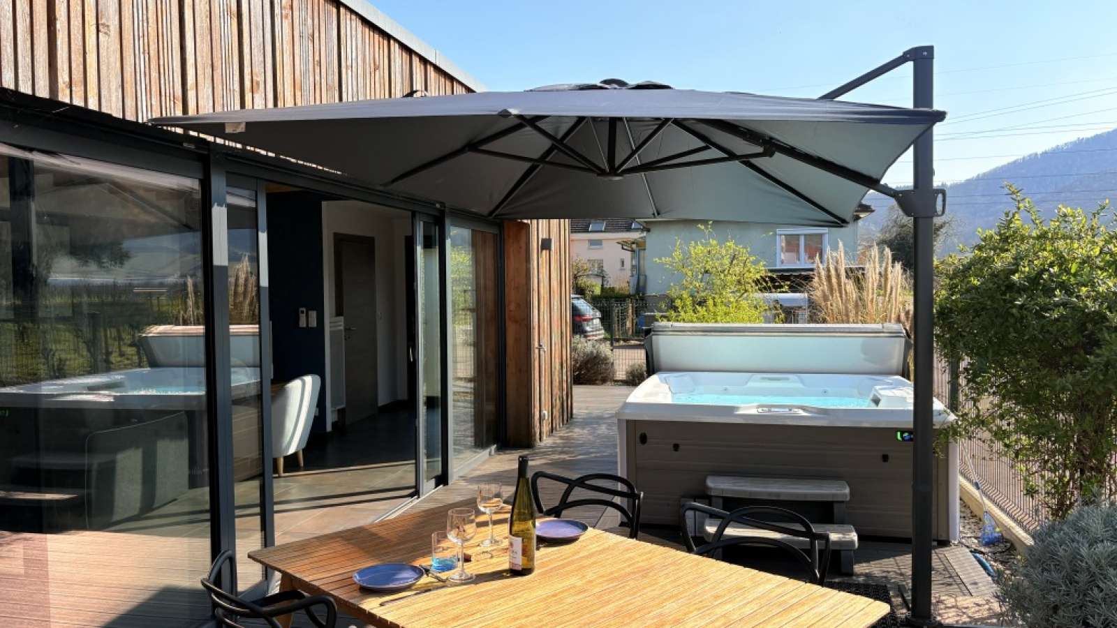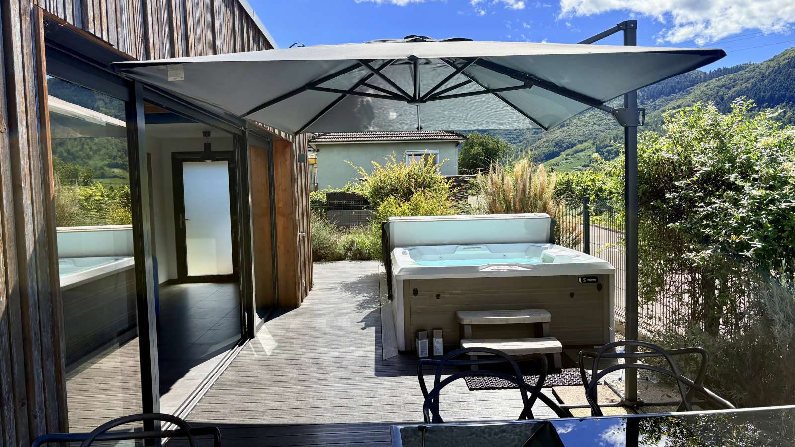 Profitez d’une belle terrasse, d’un jacuzzi privatif, de deux chambres doubles confortables, de la climatisation, d’un parking privé et de tout l’équipement nécessaire pour un séjour sans souci.