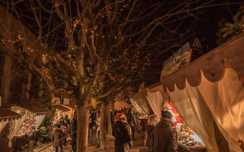 Noël est la période préférée des Alsaciens. Les Kaysersbergeois, habitants de la cité médiévale de Kaysersberg, décorent leurs fenêtres de guirlandes de sapins, la ville devient impériale et s’illumine dès la tombée de la nuit. Les odeurs de cannelle se mêlent aux effluves de vin chaud épicé à travers les ruelles animées du Village Préféré des Français 2017, cette ambiance festive et joyeuse s’installe pour les quatre week-ends de l’Avent.