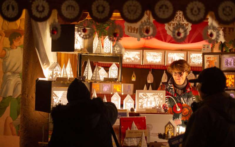 Vous bravez le froid hivernal, vous n’avez d’yeux que pour les artisans sélectionnés avec soin pour exposer leurs créations originales dans la trentaine de petits chalets nichés dans un écrin authentique et pittoresque du 17e siècle au pied des ruines du château.