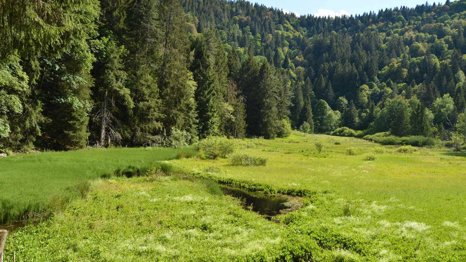 Depuis le centre de Lapoutroie vous pouvez randonner afin d'atteindre cette tourbière et profiter de ce moment apaisant pour déjeuner devant la quiétude de ce lieu avec la table de pique-nique.