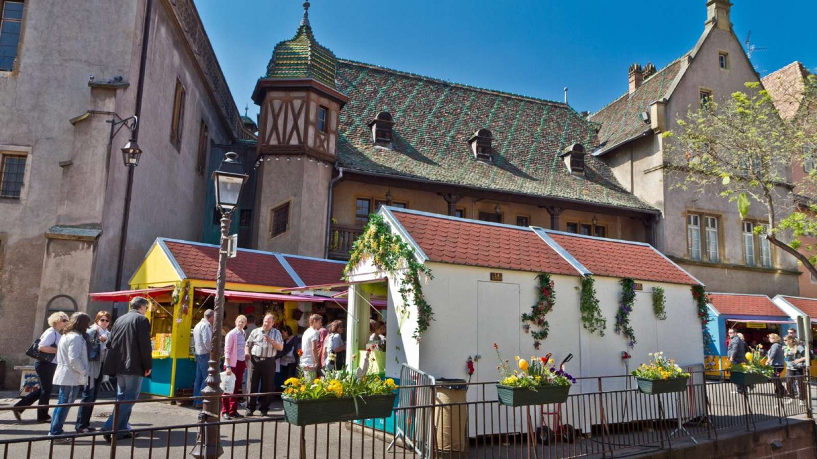 C'est autour de l'imposant Koïfhus datant du Moyen-Age, et dans un décor bucolique planté en plein centre historique, que les exposants, installés dans leurs jolies maisonnettes colorées, vous proposeront leurs produits.