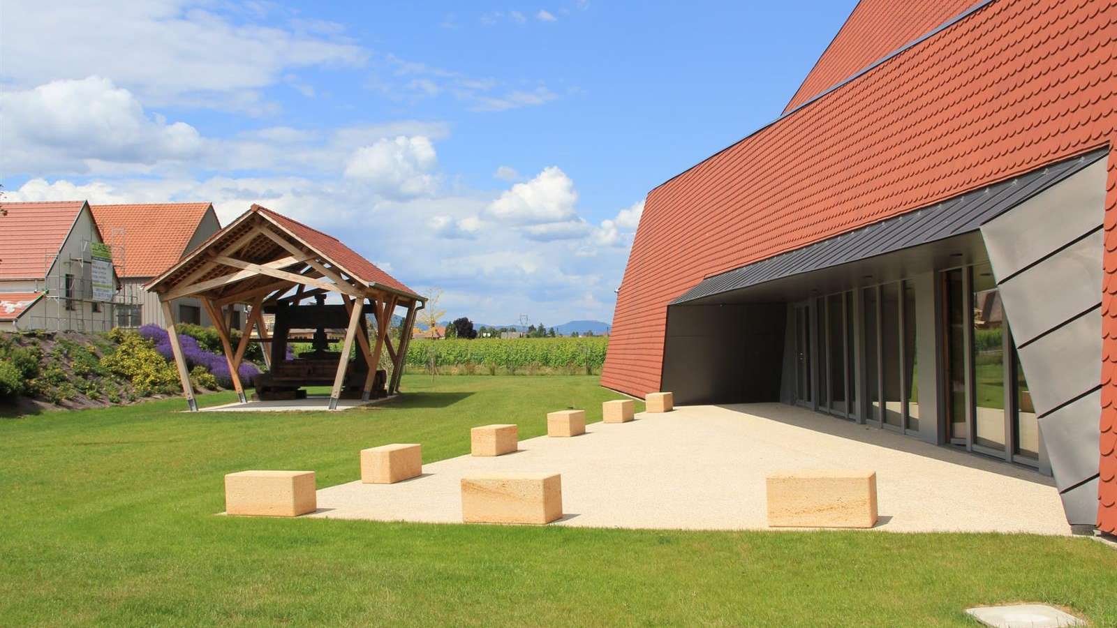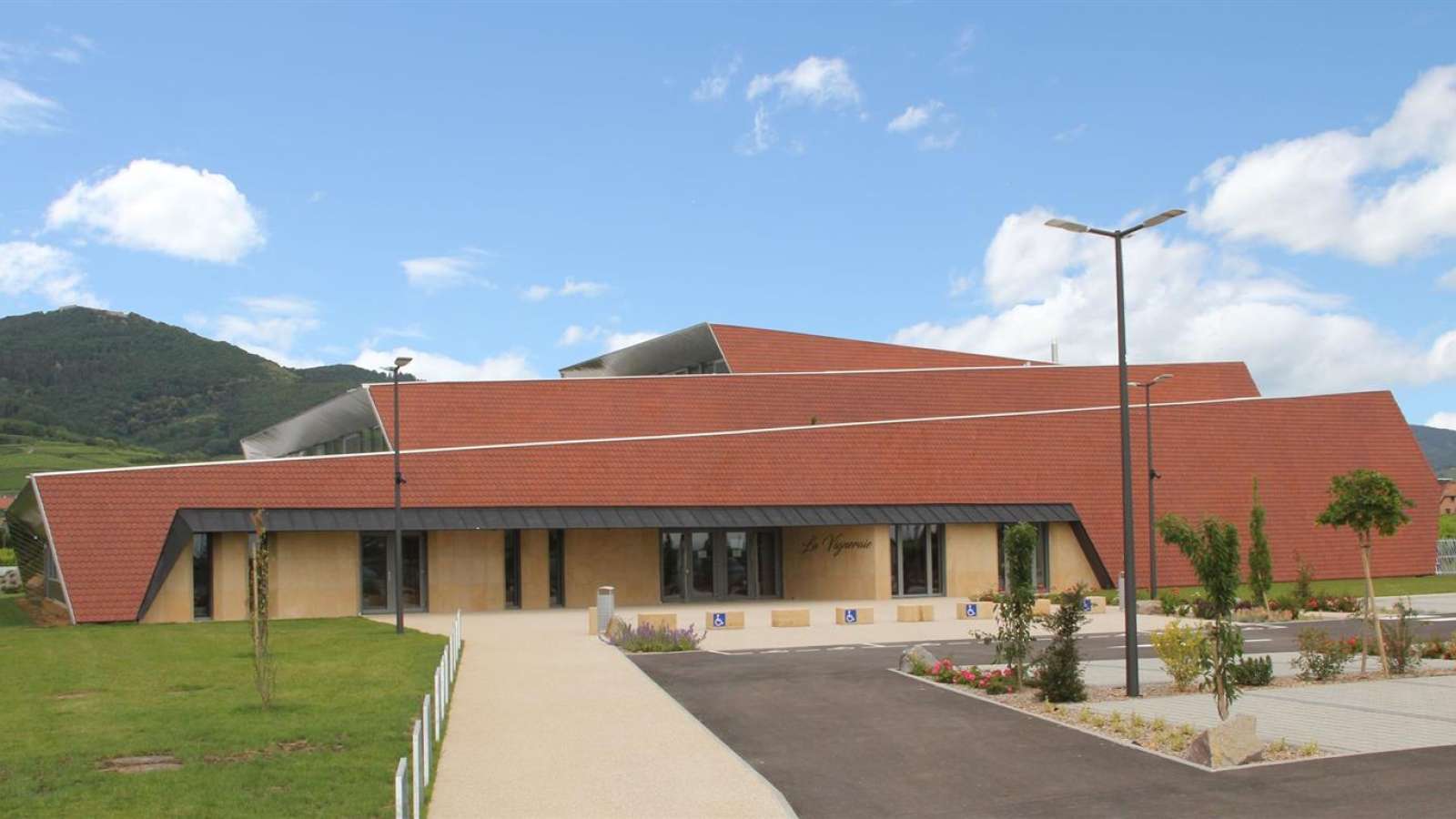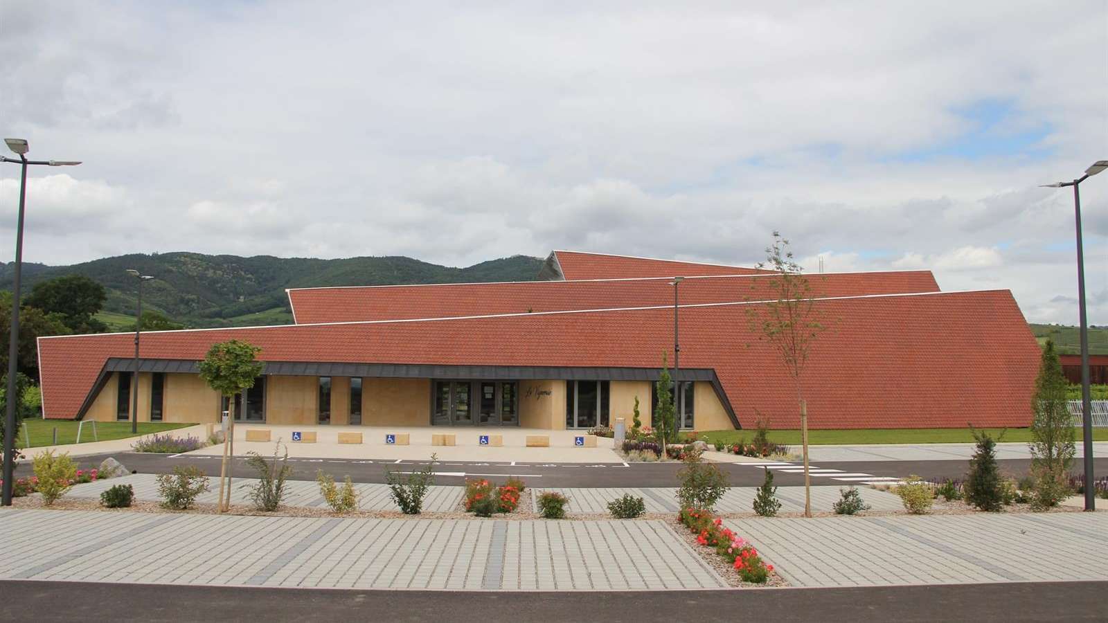 Dans la cité vigneronne de Wettolsheim, adjacente à Colmar, se trouve la salle polyvalente de la Vigneraie, moderne et dotée de hautes technologies.