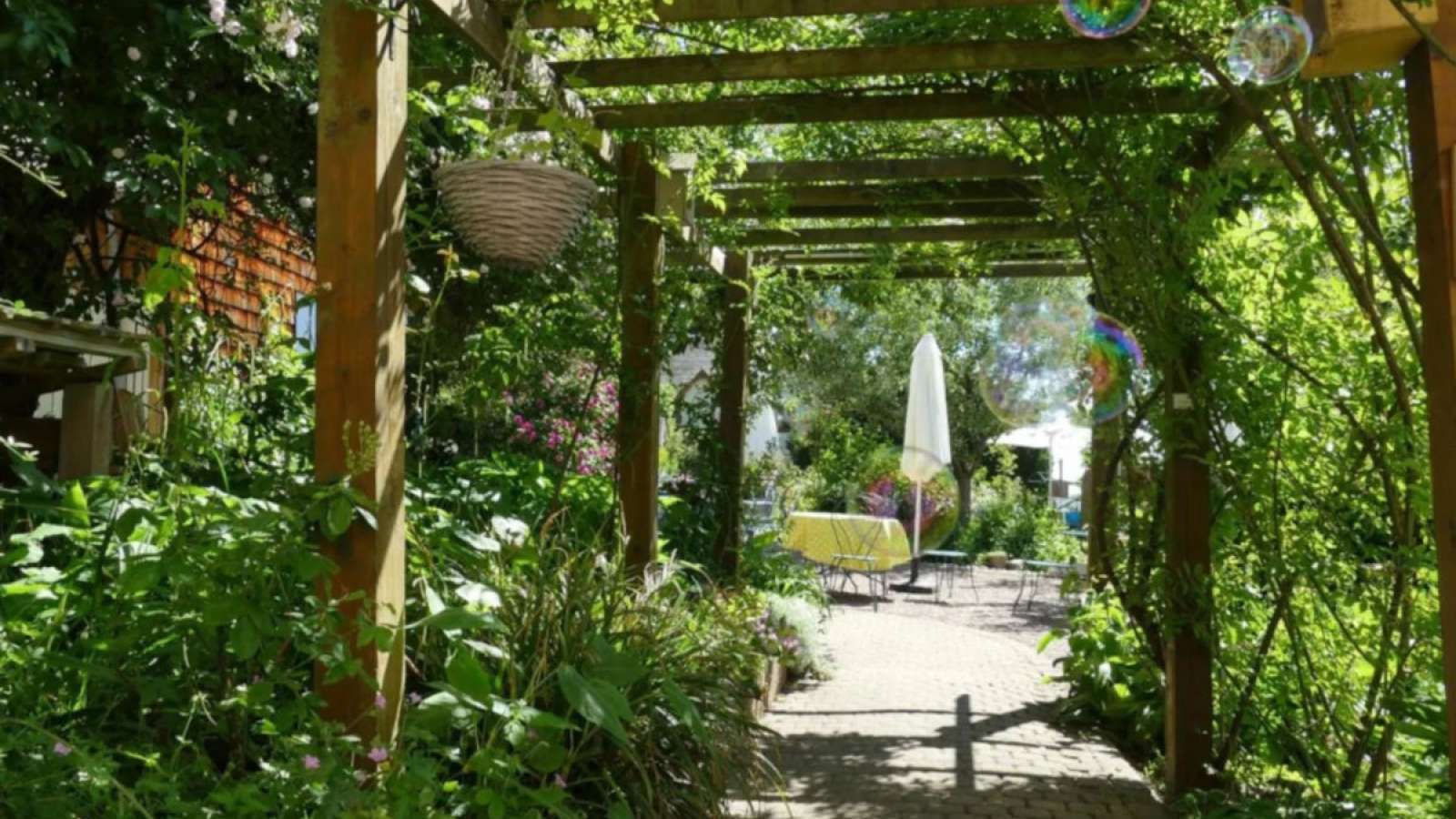 Entrez dans le jardin et profitez de nouveaux espaces extérieurs de la Villa Rosa : des voilages d'ombrage protègent la nouvelle terrasse, le mobilier vous invite à la détente dans le jardin.