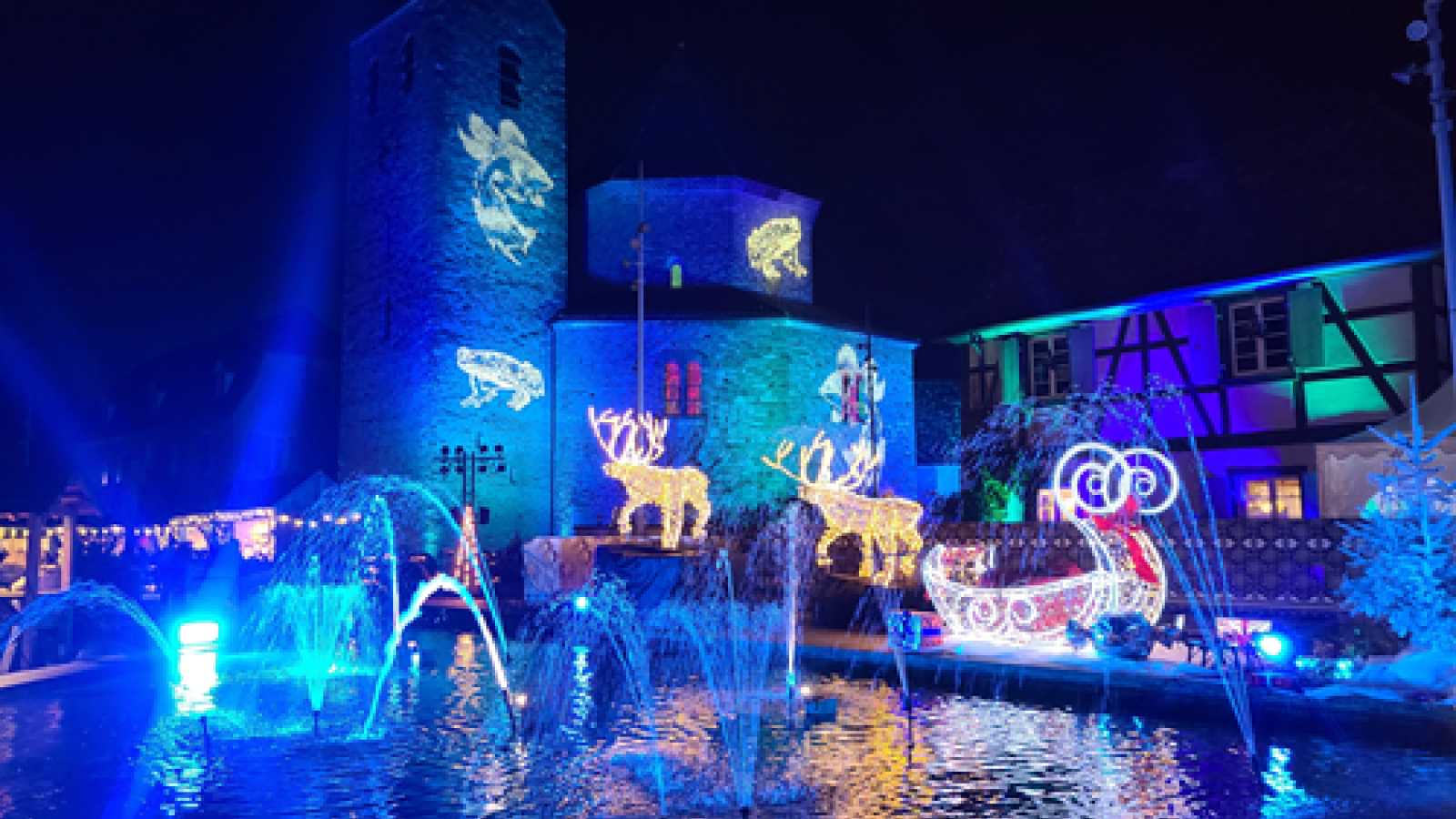 Venez profitez d’un moment magique dans les allées décorées aux couleurs de Noël, au pied de l’abbatiale, à l’écoute un concert ou encore sur le bassin ou dans le parc pour découvrir des jongleries de feu.